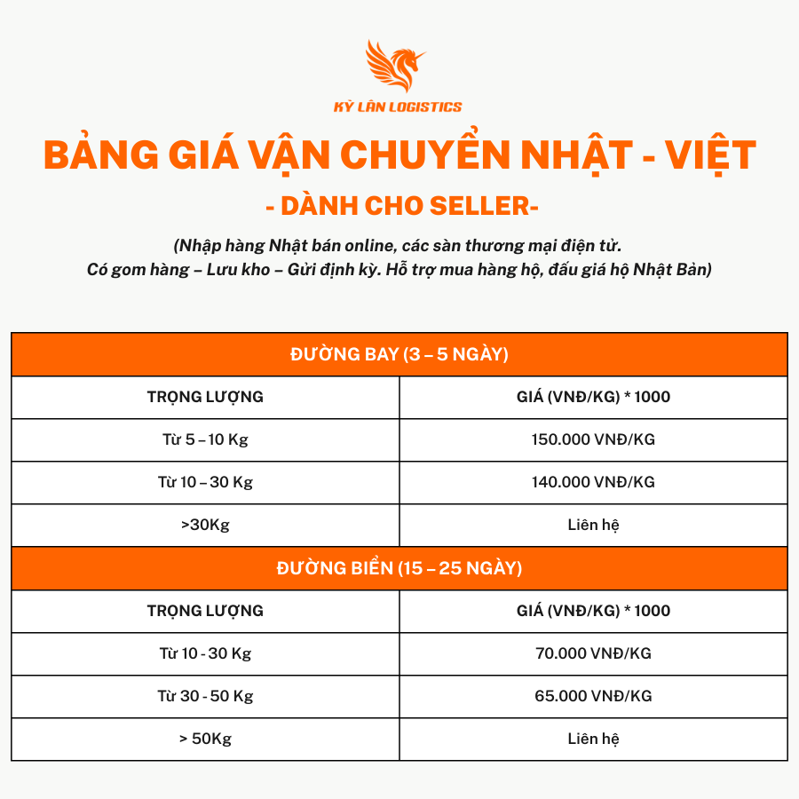 2. Bảng giá vận chuyển hàng từ Nhật về Việt Nam tại Kỳ Lân Logistics